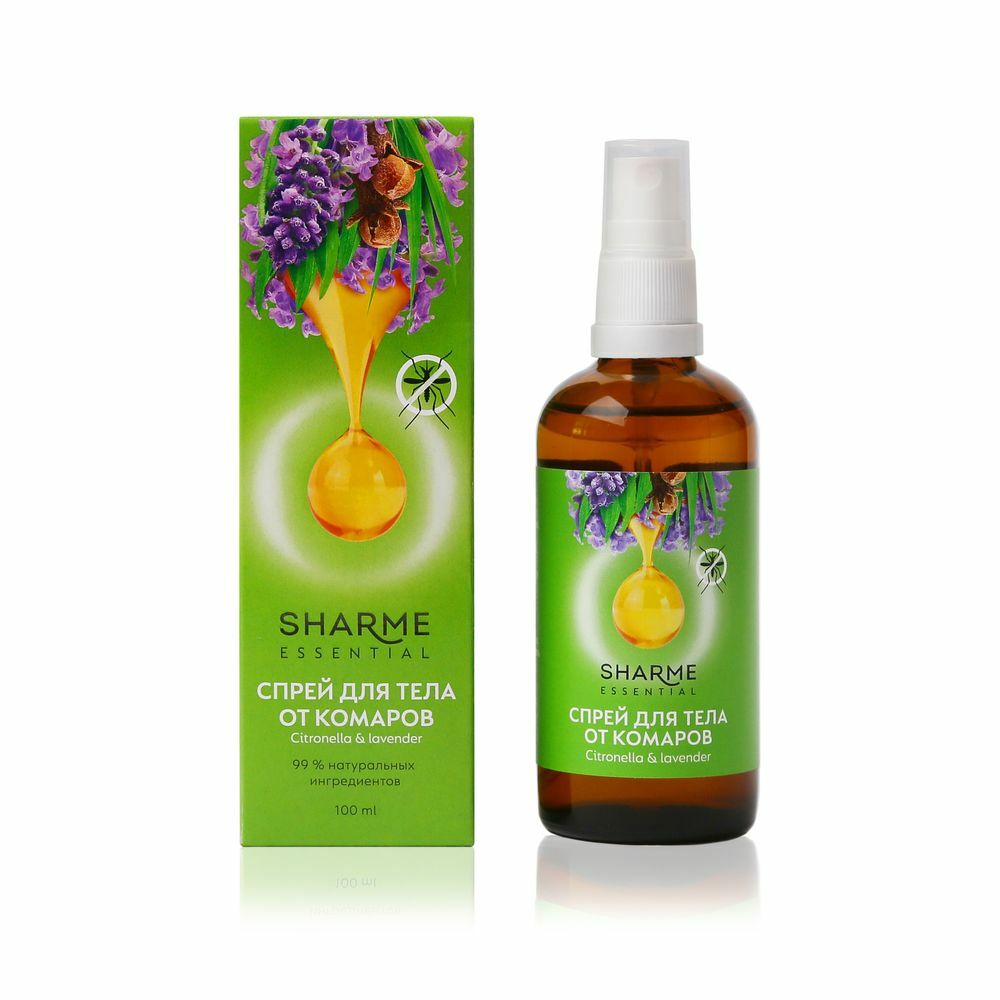 530 руб. Спрей для тела от комаров Sharme Essential «Цитронелла & лаванда», 100 мл